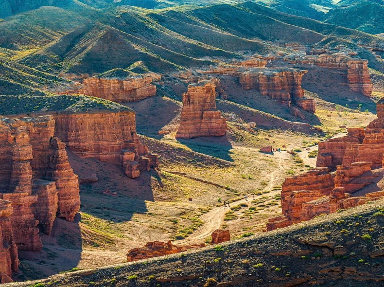 Sáng: Đoàn dùng bữa sáng tại khách sạn. Sau đó, Quý khách tiếp tục nghỉ ngơi, thư giãn, đi trekking Hẻm Charyn, nơi được ví như “Grand Canyon ở châu Á” vì sự hùng vĩ của mình. Đây là một di sản thiên nhiên được hình thành từ đá trầm tích có niên đại khoảng 12 triệu năm, chiều cao của các núi dốc đứng cao từ 150 - 300 m. Quý khách sẽ được đi bộ dọc theo thung lũng lâu đài cổ tích - nổi bật với sa thạch đỏ lộng lẫy, càng ngắm càng thu hút.