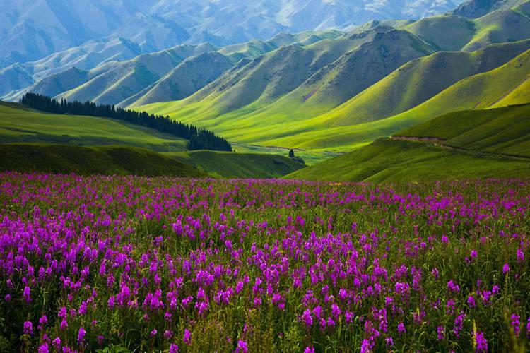 Tân Cương có nhiều thung lũng xinh đẹp, với vườn trái cây xanh tốt, những hồ nước êm dịu nước trong xanh như ngọc, những đồng cỏ xanh mướt lãng mạn, và những bóng dáng thiếu nữ xinh đẹp níu lòng du khách ....