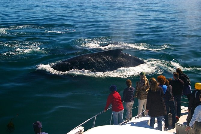 Quý khách di chuyển lên du thuyền, ra vịnh và đợi chờ cơ hội được tận mắt chứng kiến loại động vật có vú lớn nhất trên thế giới nổi lên giữa biển khơi (Quý khách chỉ có thể lên tàu nếu thời tiết cho phép - trường hợp ngày biển động và ban quản lý thông báo đoàn không thể lên thuyền, quý khách sẽ tham quan thị trấn trên bờ và cũng có thể có cơ hội được nhìn thấy cá voi gần bờ)