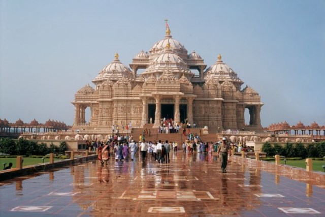 Chiêm ngưỡng mặt tiền đá cẩm thạch hào nhoáng, được tô điểm với nhiều tượng điêu khắc Vishnu và Lakshmi trong nhiều hình dạng khác nhau. Đừng quên ba mái vòm khổng lồ, tượng trưng cho 3 tôn giáo chính tại Ấn Độ: Đạo Hindu, Đạo Phật và Hồi Giáo. Tham quan đền vào cuối ngày để chiêm ngưỡng ánh hoàng hôn phản chiếu rực rỡ trên mặt tiền đền.
