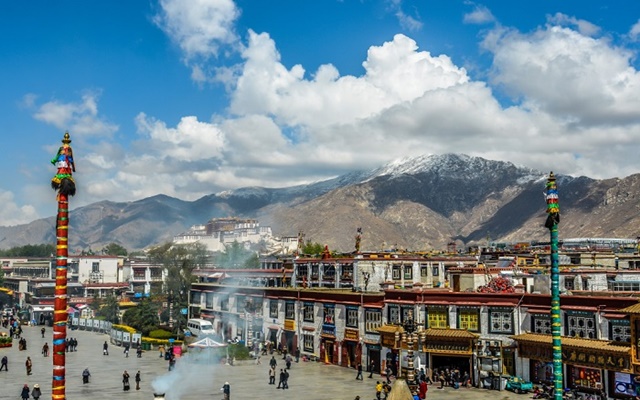 LHASA THĂM POTALA – ĐẠI CHIÊU TỰ – PHỐ BAKHOR (Ăn sáng, trưa, tối) Sáng đoàn thăm cung điện Potala – cung điện nằm ở vị trí cao nhất thế giới được xây dựng ở độ cao hơn 3.600 m. Potala – theo tiếng Tây Tạng còn là chỗ ở của QuánThế Âm Bồ Tát và cũng là nơi ở của các đời Đạt-lại Lạt-ma cho đến Dalai Lama thứ 14, đây là một quần thể kiến trúc tiêu biểu cho Phật giáo Tây Tạng. Đoàn thăm hai tầng lầu chính là Portrang Karpo (Bạch Cung) và Portrang Marpo (Hồng Cung).
