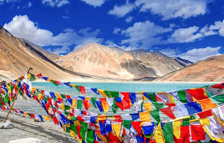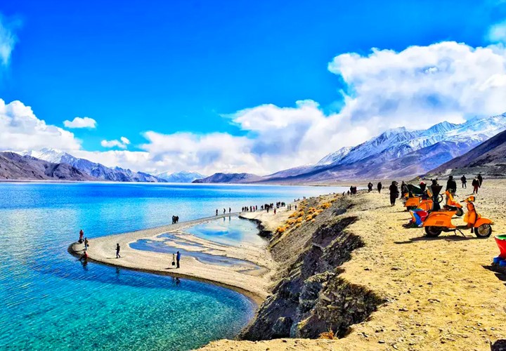 Sau bữa sáng sớm, đoàn khởi hành đến Hồ Pangong - Đến Pangong, Quý khách đi qua một vài ngôi làng nhỏ của Changthang và phóng tầm mắt ra hồ Pangong nằm ở độ cao 14.000 feet (4.267 m). Hồ nước lợ trong xanh nổi tiếng của Pangong này rộng 5,6 km và dài hơn 133 km với một nửa của nó chạy ở phía bên kia của "Biên giới Tây Tạng - Trung Quốc". Đoàn thoả sức check in các cảnh điểm tự nhiên tuyệt đẹp này, đây là nơi thu hút rất nhiều khách du lịch từ khắp nơi trên thế giới.