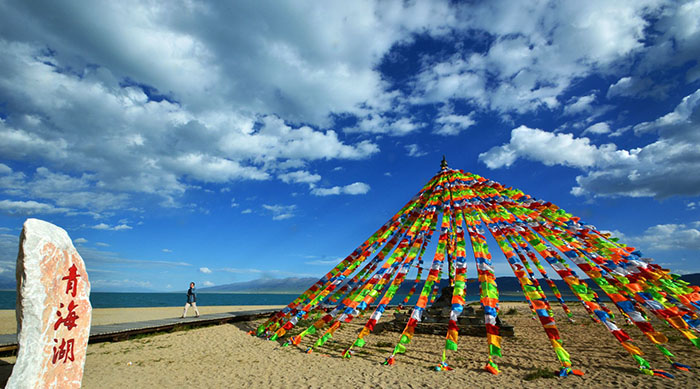 - Hồ Thanh Hải: là hồ nước mặn lớn nhất ở trên cao nguyên Thanh Tạng, với diện tích 4483 Km vuông ( bằng 5 nước Singgapo) nếu đi vòng quanh 1 vòng hồ là 360 KM. Hồ Thanh Hải với ngôn ngữ Tây Tạng có nghĩa là hồ có nước màu xanh. Ở đây mỗi mùa mỗi cảnh ( tháng 5 là cảnh hàng chục ngàn chím Hải Âu , từ 15 tháng 7 - 20 tháng 8 xung quanh hồ Thanh Hải là bạt ngạt những rừng Hoa Cải ) phải đích thân đến mới thưởng thức được vẻ đẹp của cảnh hồ